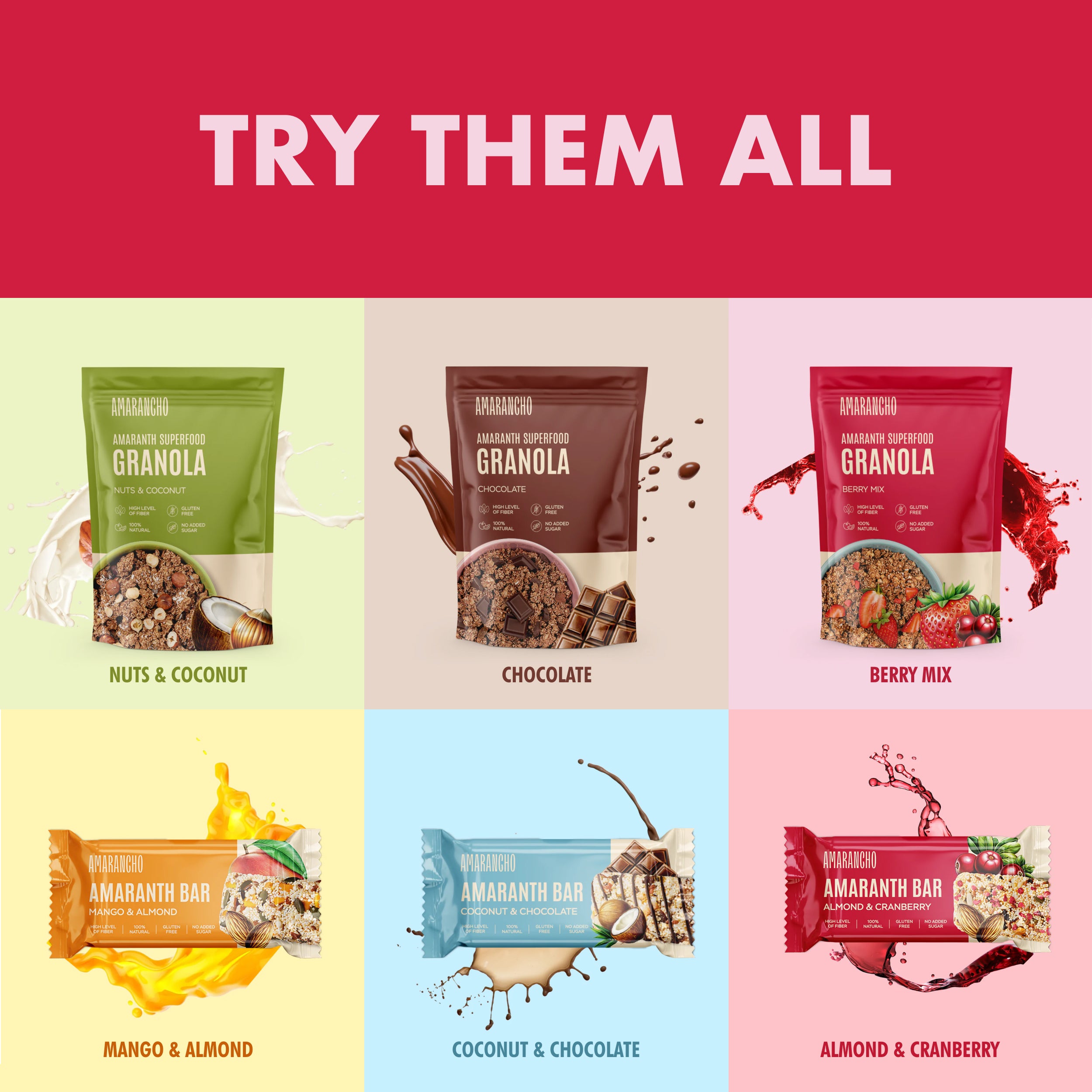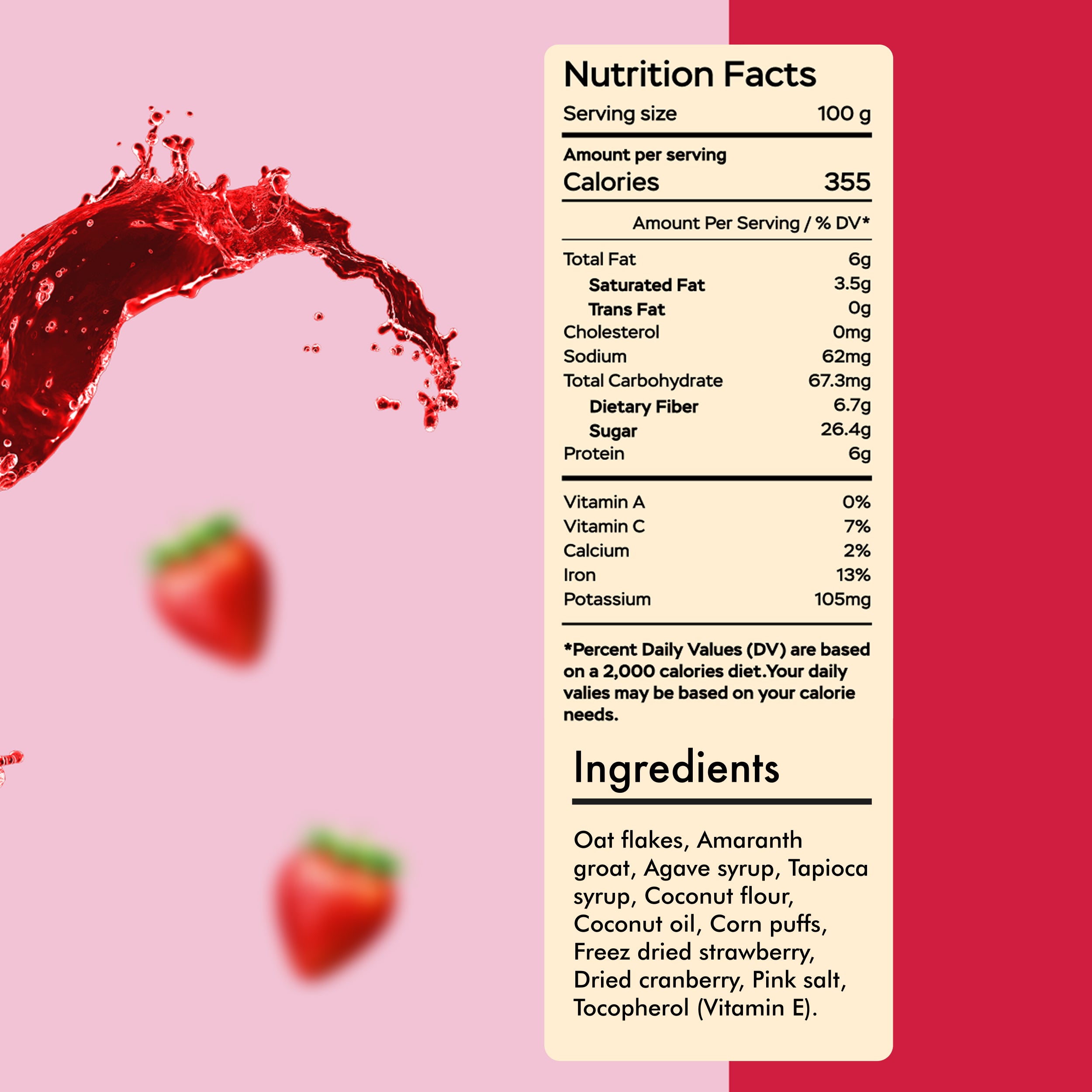 Our Amaranth Oat Granola is a delicious and nutrient-packed blend of ancient superfoods and natural ingredients. Made with crunchy oats, popped amaranth and berries, it delivers the perfect balance of taste and nutrition in every bite.